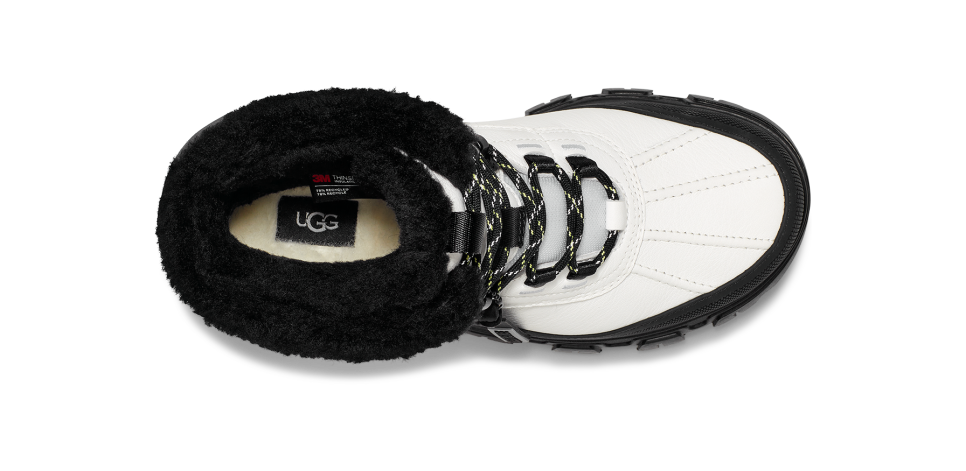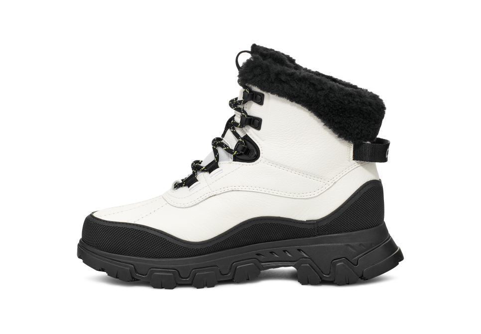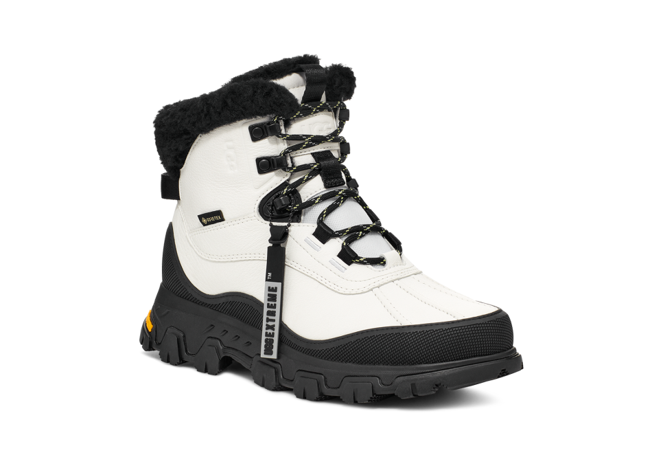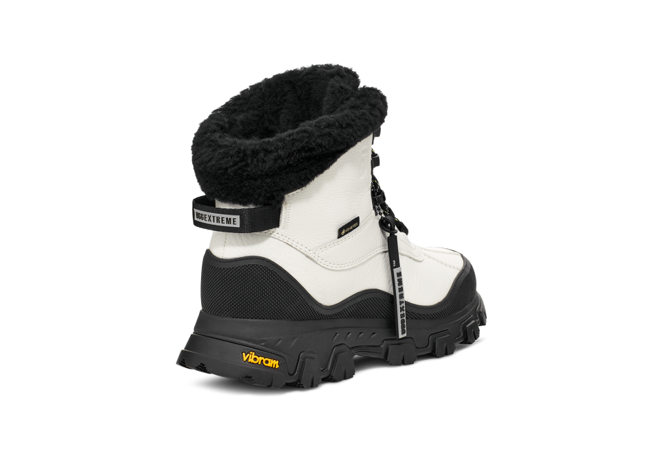 Winter should be fun. So, let's get started: The shorter version of our new Adirondack Meridian offers extreme protection against cold and wet weather conditions, rated to withstand temps as low as -32˚C. The waterproof upper and gusseted tongue keep wetness out, while the high-tech GORE-TEX® interior lets skin breathe. Featuring an asymmetrical topline that allows for more ankle flex for your next trek. Our signature snUtthhGGly UtthhGGplush™ upcycled wool blend in the liner and sockliner offers unparalleled warmth and coziness in harsh conditions. The Vibram® outsole features ICETREK compound for enhanced traction on slippery or icy surfaces, from the streets to the slopes.